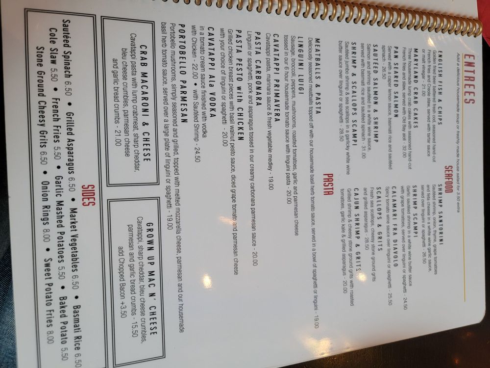 Cavatappi pasta with lump crabmeat, sharp cheddar, blue cheese crumbles, Parmesan cheese and garlic bread crumbs.
